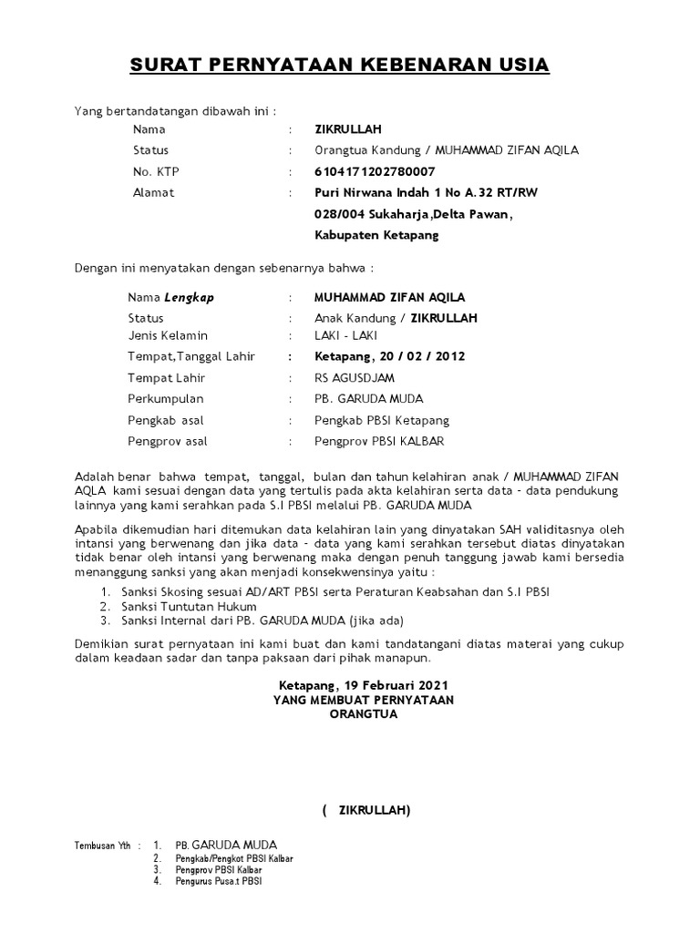 Cara Membuat Surat Pernyataan Kebenaran Usia